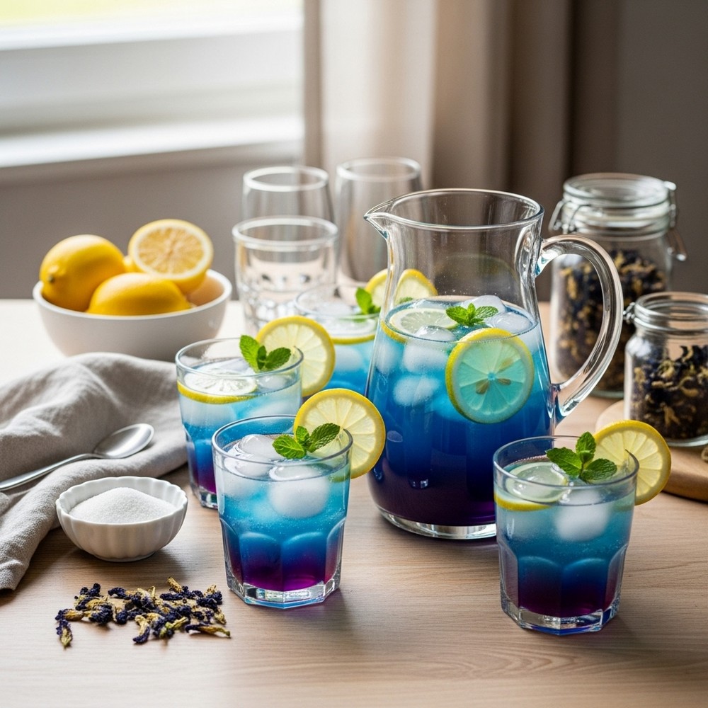 Butterfly pea lemonade is as playful as it is refreshing. You can serve it as a non-alcoholic welcome drink, pour it into a pitcher for brunch, or dress it up with sparkling water for a fizzy twist. Adjust the sweetness to taste, or swap sugar for honey or agave. For parties, let guests add their own lemon juice so they can watch the color change themselves. It’s beautiful, simple, and guaranteed to become a conversation starter at any gathering.