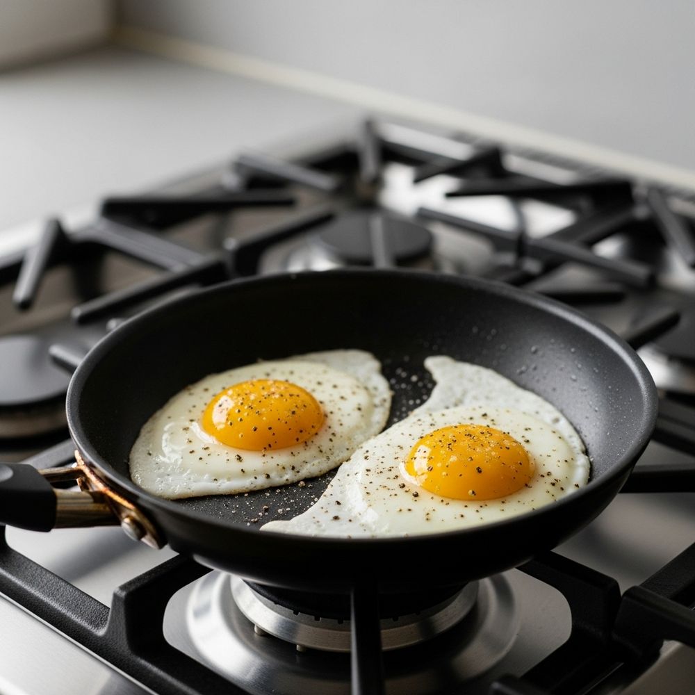 Heat a small nonstick pan over medium heat with a light drizzle of olive oil. Crack in the eggs and cook to your liking: sunny-side up with runny yolks, or slightly firmer if preferred. Season with salt and pepper.