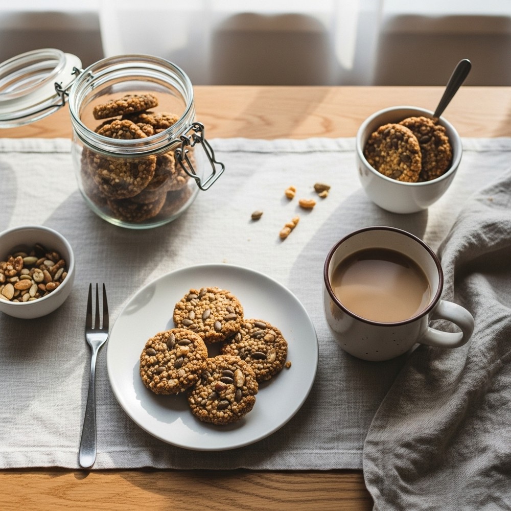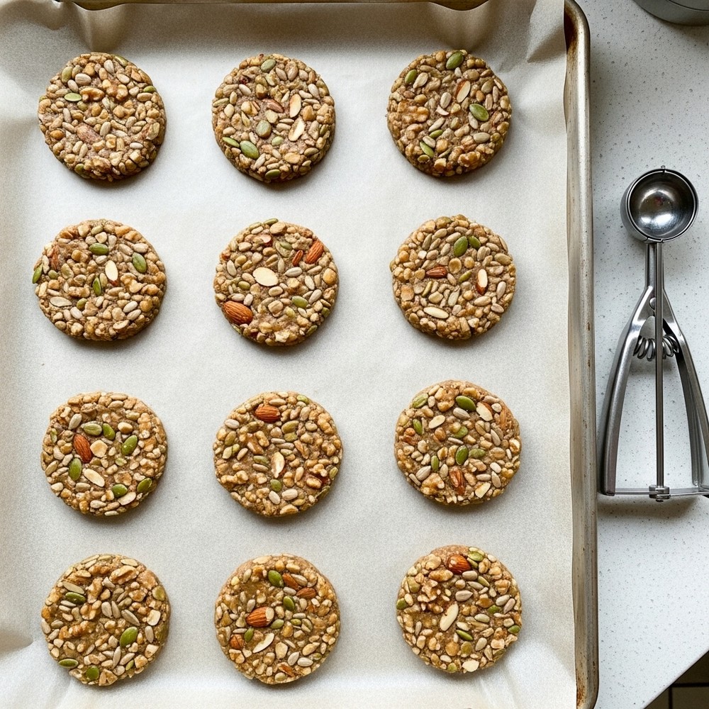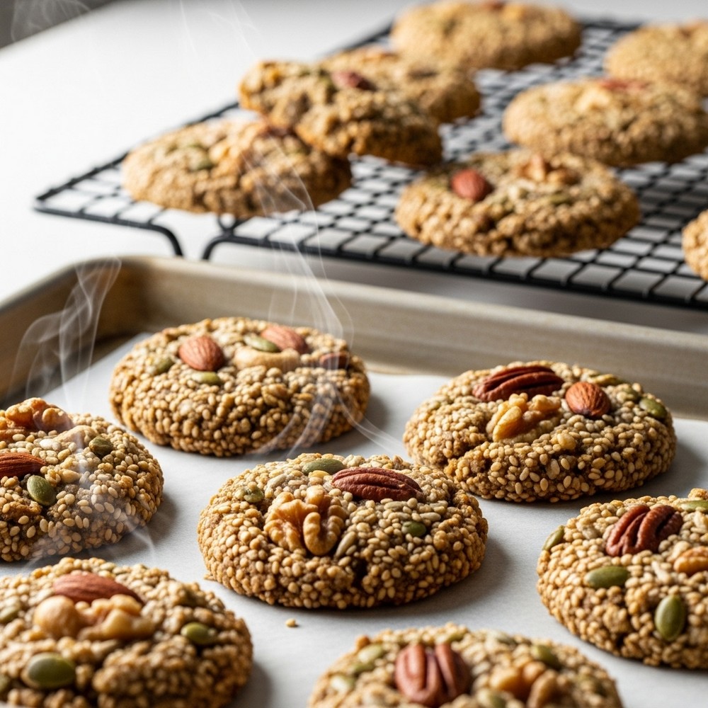 These cookies are endlessly flexible: swap in your favorite nuts, change the seeds, or use dried fruit for extra chew and sweetness. They’re great for meal prep because they store well and travel beautifully in lunchboxes or gym bags. Serve them with yogurt and fruit for breakfast, pair with tea or coffee as an afternoon pick-me-up, or crumble one over a smoothie bowl. They taste indulgent while staying firmly on the nourishing side of the cookie spectrum.