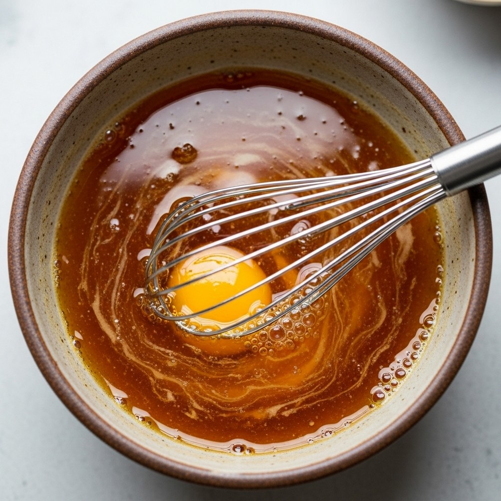 In a separate medium bowl or jug, whisk together the honey or maple syrup, melted coconut oil, vanilla extract, and the beaten egg (or prepared flax egg for a vegan version) until smooth and well combined.