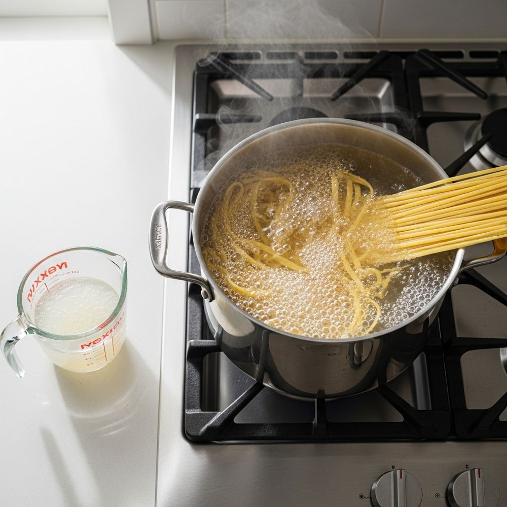 - Reserved hot pasta cooking water – ½–1 cup (to loosen sauce as needed)