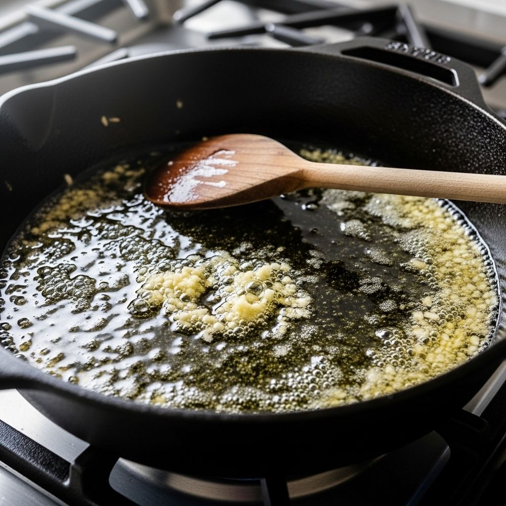 In a large, deep skillet over medium heat, melt the butter with the olive oil. Add the minced garlic and cook gently for 30–60 seconds until fragrant but not browned. Turn the heat to low to keep the garlic soft and sweet.