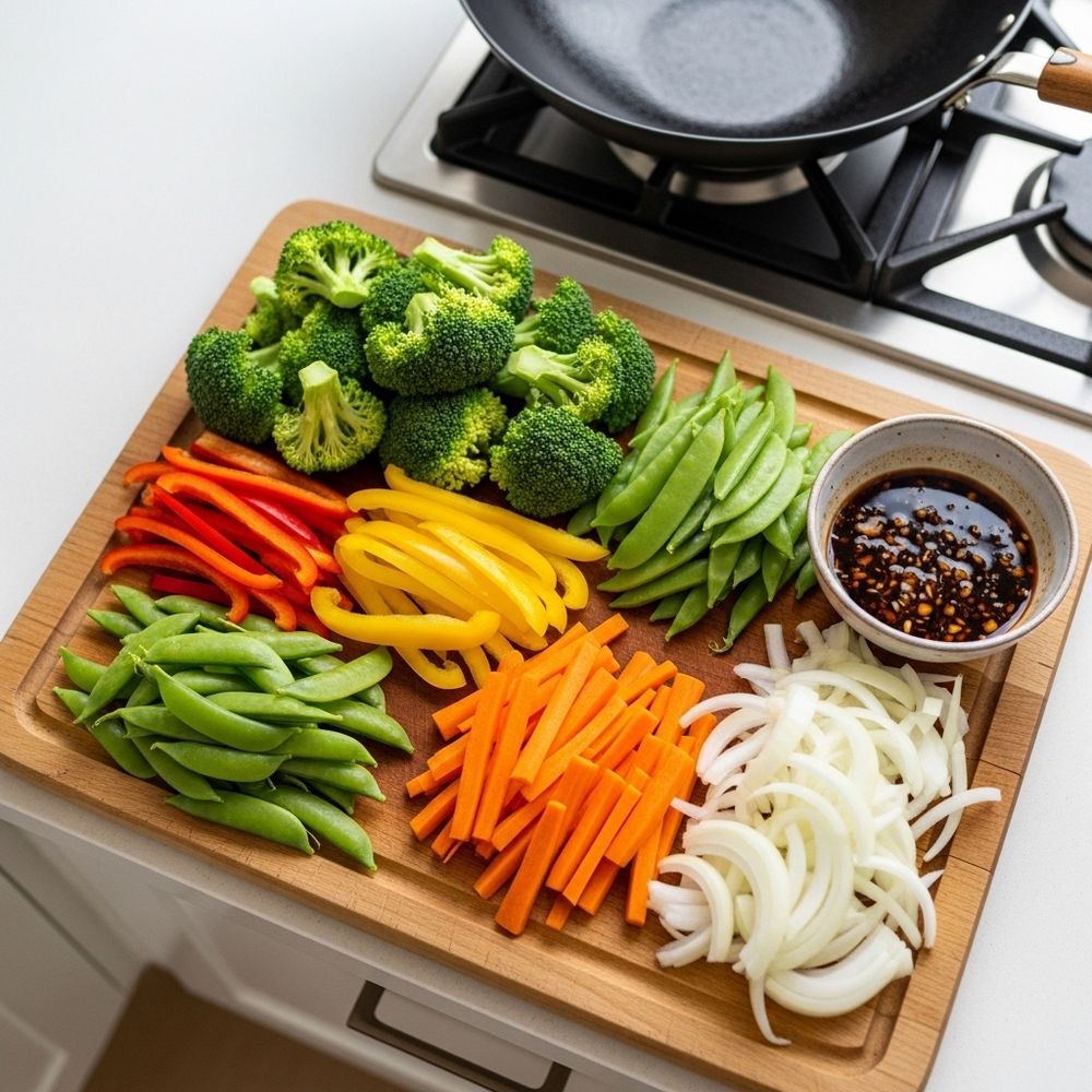 Keep all vegetables and sauce ready before you start cooking; stir-frying moves quickly and is easiest when everything is prepped and within reach.