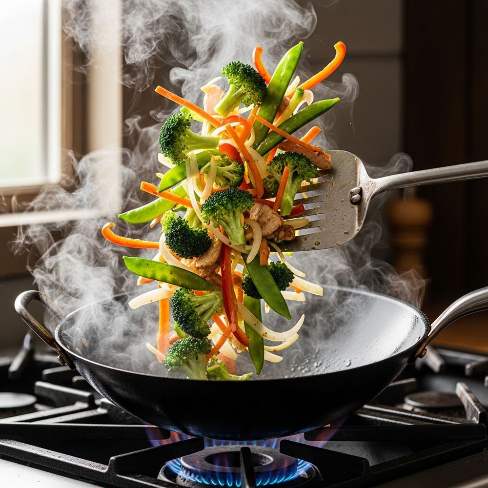Place a large wok or wide skillet over medium-high heat. Add the neutral oil and let it heat until shimmering but not smoking. Have all vegetables and aromatics nearby, ready to add quickly.