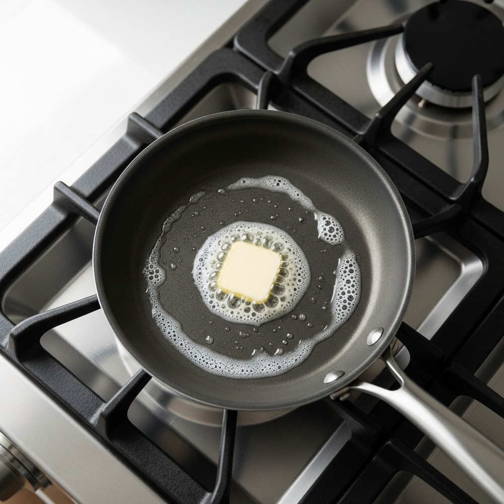 Place a nonstick or well-seasoned skillet over low to medium-low heat. Add the butter and let it melt slowly, tilting the pan to coat the bottom and a little of the sides.