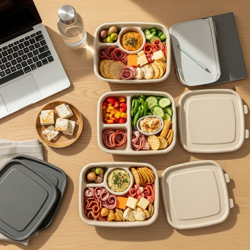 This snack plate style lunch box is designed to feel grown-up but playful, with plenty of textures and flavors in every bite. You can keep it classic with meat, cheese, and crackers or tilt it Mediterranean with hummus, olives, and pita chips. It’s easy to scale up for meal prep, pack a few days’ worth at once, or build a grazing board from the same ingredients. It also works wonderfully for picnics, flights, and long commutes when you need portable protein.
