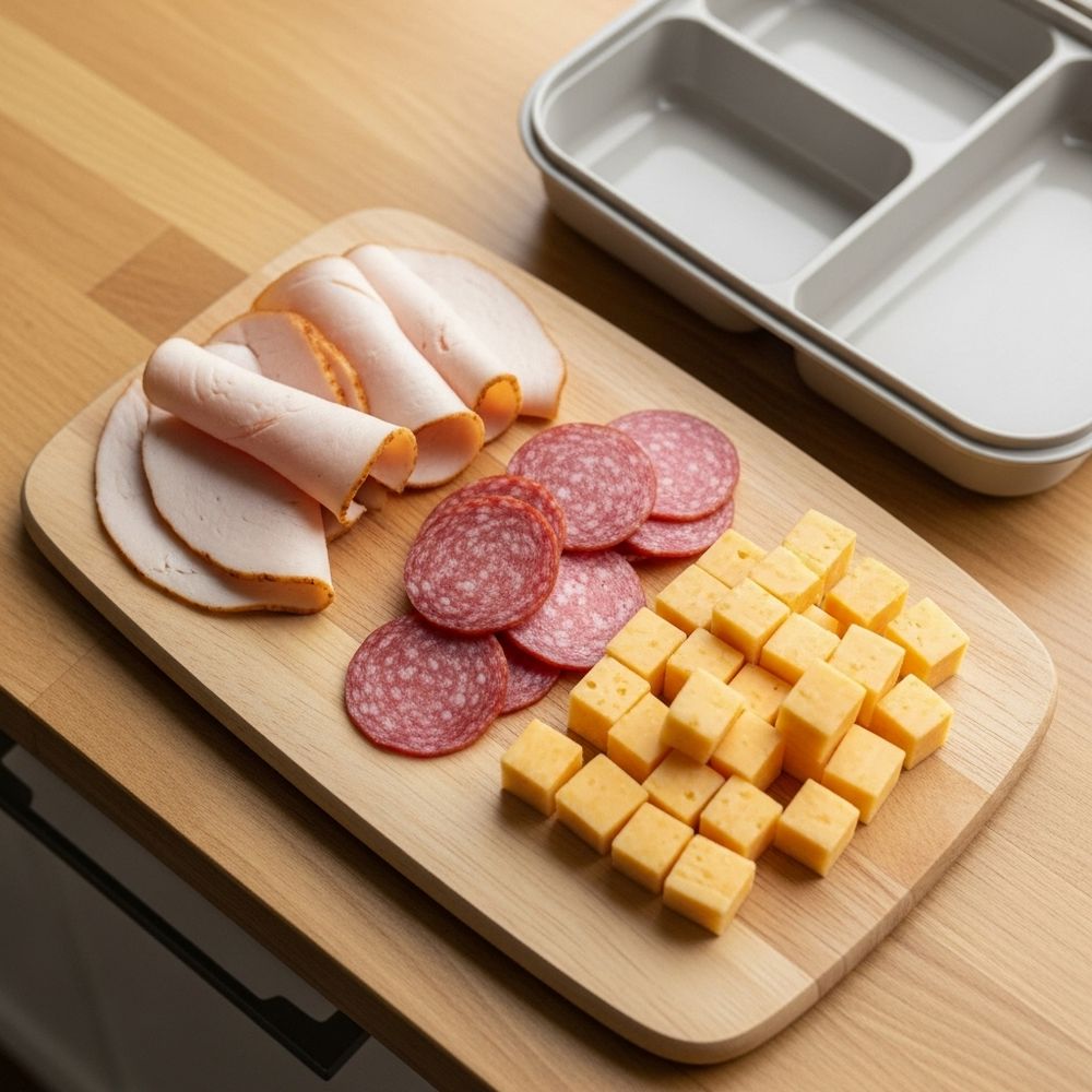 Slice or fold the turkey (and salami, if using) into bite-sized pieces that fit neatly into your lunch box compartments. Cut the cheese into cubes or slices.