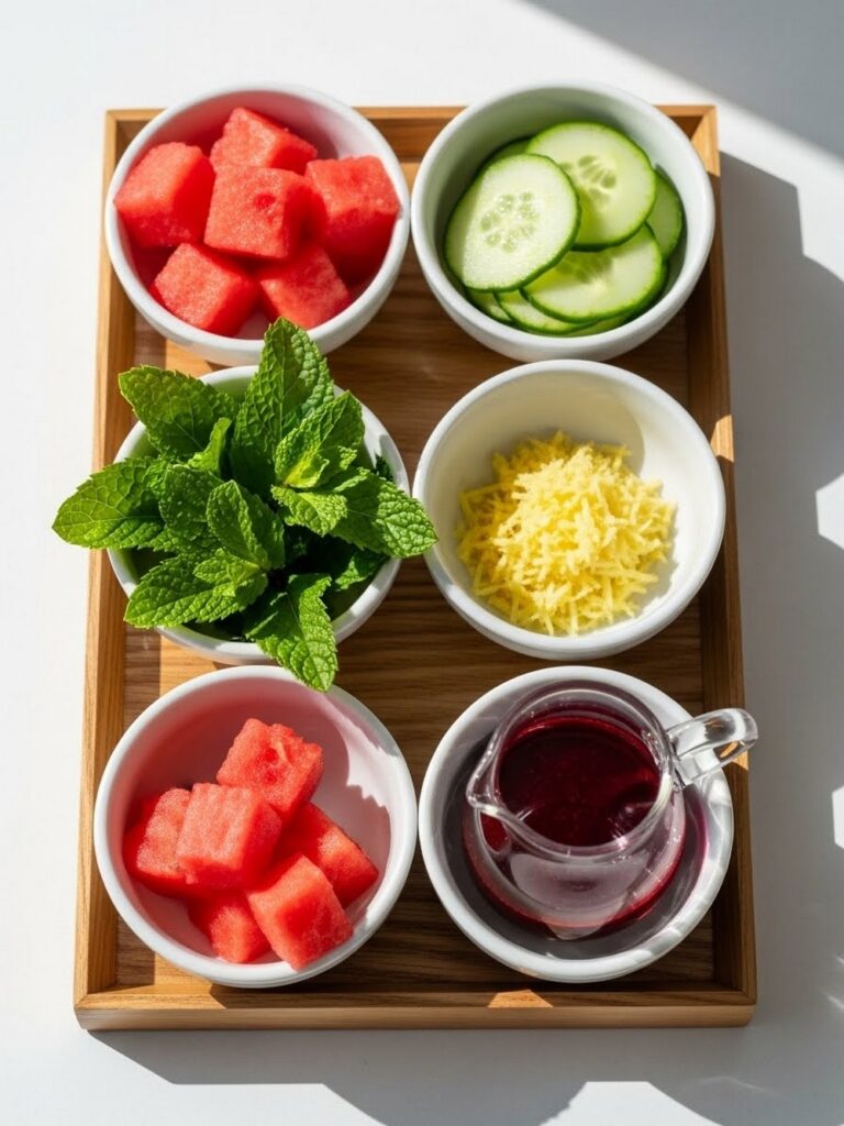 - Cucumber ribbons or purée: cooling + spa-like; boost with basil or mint; swap: thin-sliced zucchini for a different green note