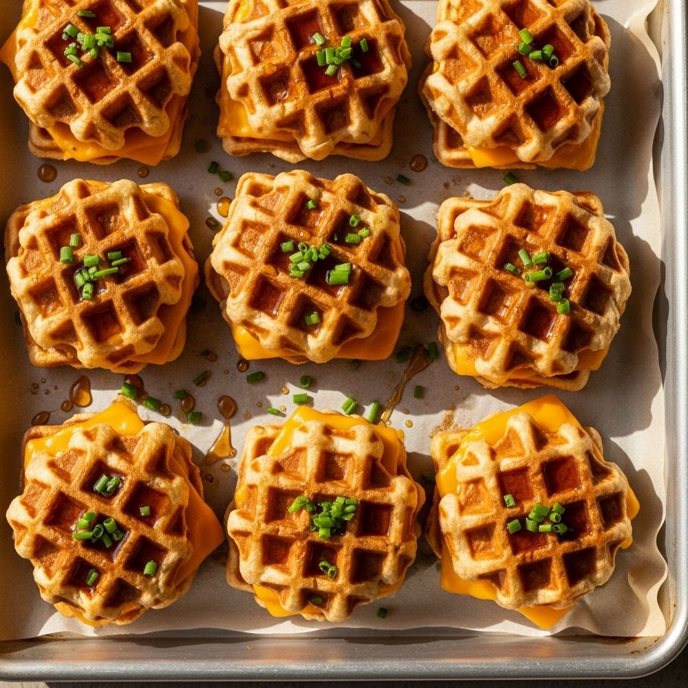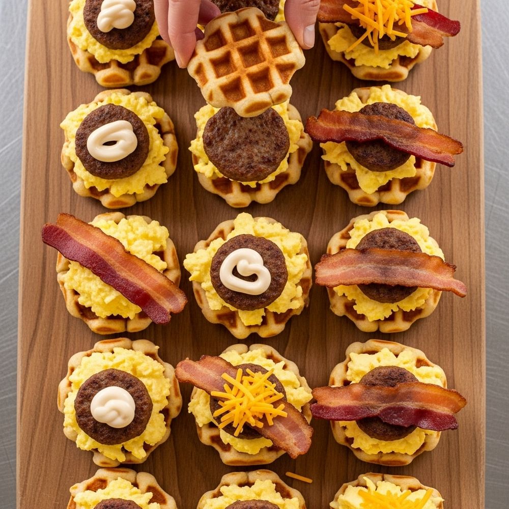 For the crispiest sliders, always toast the waffles first and let them sit briefly on a wire rack before assembling so steam escapes and they stay crunchy.